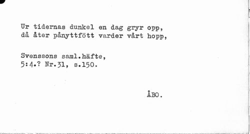 //// ¦ //// i //// Ur tidernas dunkel en dag gryr opp, då åter pånyttfött varder vårt hopp, //// Svenssons saml.häfte, //// 5!4.? Hr.31, s.150. //// 1 //// ÅBO. ////