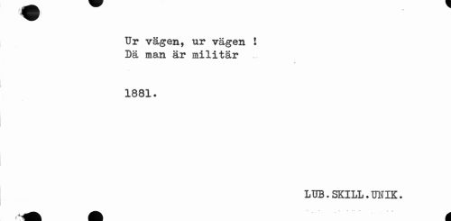//// Ur vägen, ur vägen 1 Dä man är militär //// » //// 1881. //// LUB. SKILL. TJUIK. //// a å ////