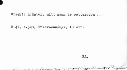 //// Ursekta hjäntor, mitt namn är Pettersson B 41? s.348, Friareannångs, 10 str. //// HA. ////