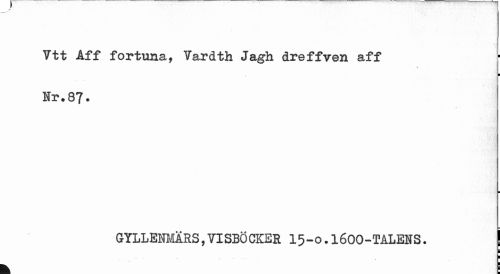 //// Vtt Aff fortuna, Tardth Jagh dreffven aff ¦ //// i1 //// Nr.8?. //// ¦ //// GYLLENMÄRS, YISBÖ CKEE 15-O.1600-TALENS. j //// i //// ... i 1 //// k ////