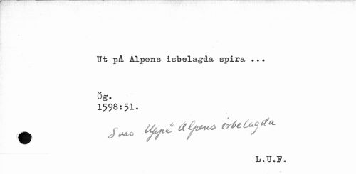 //// Ut på Alpens isbelagda spira //// O g* //// 1598:51. //// # fr aih* //// L.U.F. //// •»s ////