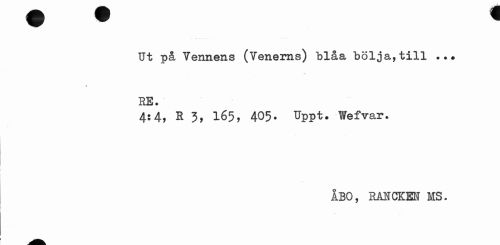 //// Ut på Termens (Tenerns) "blåa bölja,till //// * //// SE * //// 4:4, E 3, 165, 405» Uppt. Wefvar. //// ÅBO, RAHCKEN MS. ////