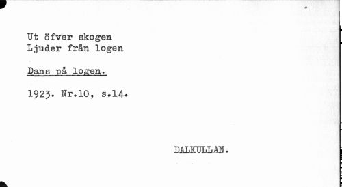 //// ¦ //// Ut öfver skogen Ljuder från logen //// Sans -på log;en» //// 1923. Hr* 10, s*14* //// DALKULLAN- j //// ¦ //// i ¦ //// k 1 ////