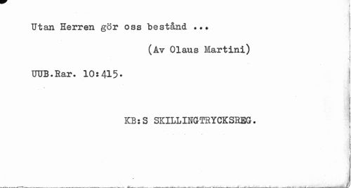 //// Utan Herren gör oss bestånd //// (Av Olaus Martini) 1 //// i //// i //// UUB.Rar. 10:415- //// i //// i //// j //// IH { //// KBS SKILLIIIGTRYGKSREG. //// 1 ////