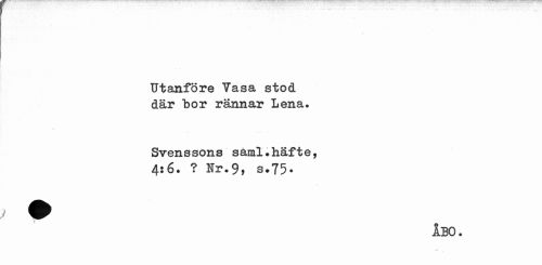 //// Utanföre Yasa stod där bor rännar Lena» //// Svenssons saml*häfte, //// 4*6. ? Hr* 9» e.75• //// ÅBO. ////
