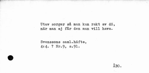 //// Utav sorger så man kan rakt av dö, när man ej får den man vill hava. //// Svenssons saml.häfte, //// 4:4. ? Hr.9, s.91. //// ÅBO. ////