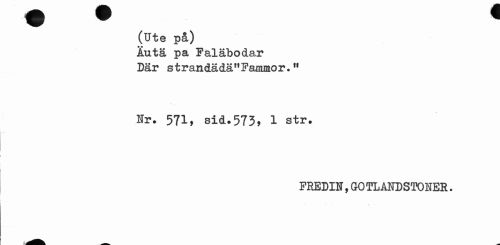 //// (Ute på) //// lutä pa Faläbodar Där strandädär,Fanuaor.H //// Nr. 571, sid.575, 1 str. //// FREDIN,GOTLANDSTONER. ////