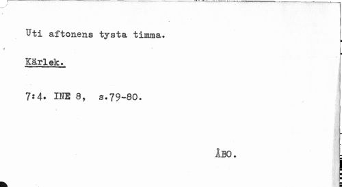 //// Uti aftonens tysta timma. //// ¦ //// •9 //// ¦ //// Kärlek. //// 7:4. INE 8, s.79-80. //// ÅBO. //// i ¦ //// ¦ ¦ //// t E ////