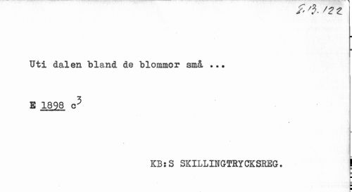 //// Uti dalen bland de blommor små ... £ 1898 c5 //// * //// KBjS skillingtrycksreg . j //// ] ¦ //// 1 ¦ ¦ ////