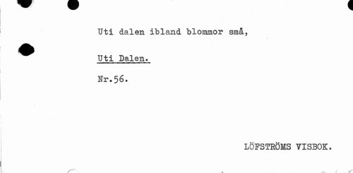 //// Uti dalen ibland blommor små, //// > //// ^^ Uti Dalen. //// Nr.56» //// LQFSTRÖMS VISBOK. ////