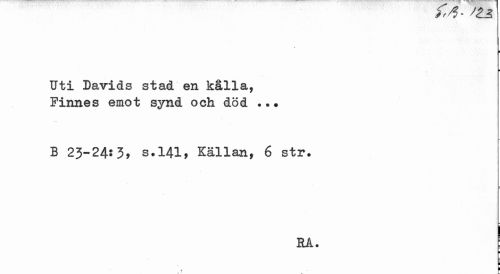 //// i i //// Uti Davids stad en kalla, Finnes emot synd och död ... //// B 23-24* 39 s.141, Källan, 6 str. //// i //// SA. //// ¦ //// i ¦ ////