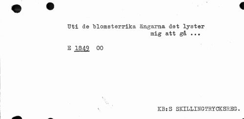 //// 4 //// Uti de blomsterrika ängarna det lyster //// mig att gå •.» //// E 1849 00 //// \ //// * v 1 • //// • X //// \ KB:S SKILLINGTRYCKSREG. ////