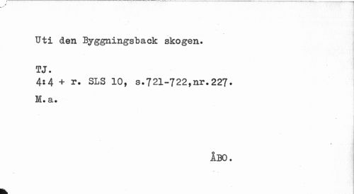 //// Uti den Byggningsback skogen, fj. //// 4:4 + r. SLS 10, s.721-722,nr.227• //// M» cl* //// 0 //// 1 BO. //// IL ////