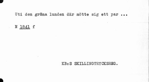 //// Uti den grena lunden där mötte sig ett par «*# //// A //// K 1841 f //// KB:S SKILLINGTSYCKSREG. //// k ////