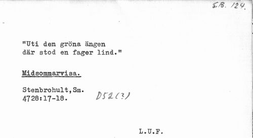 //// ' ** * ' c. T //// * //// r j //// r,Uti den gröna ängen där stod en fager lind.fl //// Mi d sommarvisa * Stenbrohult,Sm. f //// 4728? 17-18. Dyl(?/ //// L.U.F. ////