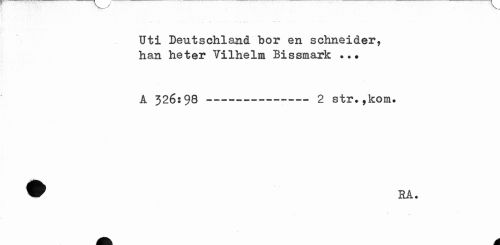 //// Uti Deutschland bor en schneider, han heter Vilhelm Bissmark . .• //// A 326:98 ---2 str.,kom. ////