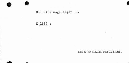 //// Uti dina unga dagar .•• //// v //// B 1819 e //// KB: S SKILLINGTRYCKSREG. ////