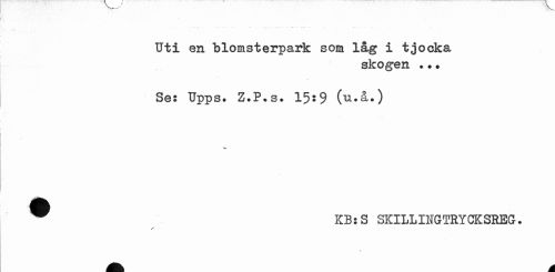 //// Uti en blomsterpark som låg i tjocka //// skogen ??. //// \ //// Se: Upps. Z.P.s. 15*9 (u»å«) ^ KB:S SKILLINGTRYCKSREG. //// r //// l ////