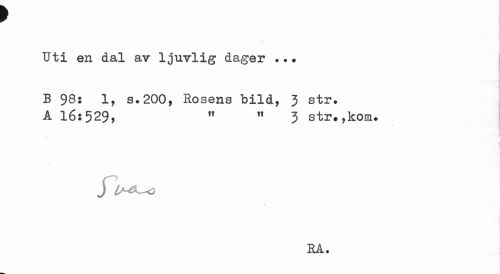 //// f //// Uti en dal av ljuvlig dager ... B 98: 1, s.200, Rosens bild, 3 str. //// A 16:529, " " 3 str.,kom. //// RA. ////