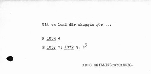 //// Uti en lund där skuggan gör ... //// N 1854 d //// E 1822 t; 1822 q, d3 //// KBsS SKILLIHGTRYCKSREG. ////