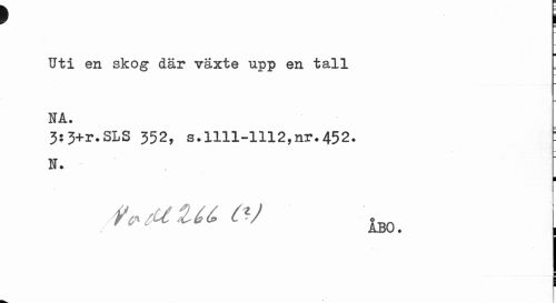 //// t I //// Uti en skog där växte upp en tall NA. //// 3:3+r.SLS 352, s.1111-1112,nr.452. N. //// I //// MUi W I ////