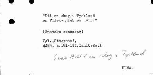 //// MUti en skog i Tyskland en flicka gick så nätt.M //// (Enstaka romanser) //// Vgl*,Otterstad, //// 4485, s?181-182,Dahlberg,I? //// ULMÅ. ////