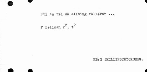 //// Uti en tid då allting fallerar .•• //// 2 2 F Bellman r , t //// KB:S SKILLINGTRYCKSREG. ////