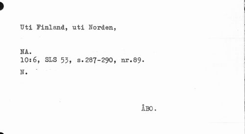 //// f I //// Uti Finland, uti Norden, HÅ. //// 10:6, SLS 53, s.287-290, nr.89- //// N. ' //// « //// ÅBO. //// k. ////