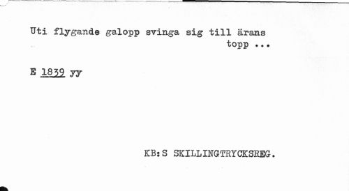 //// Uti flygande galopp svinga sig till ärans //// topp ... //// E 1859 yy //// KB:S SKILLINGTRYCKSREG. ////