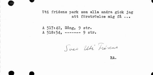//// Uti fridens park som alla andra gick jag //// att förströelse mig få ... //// A 517:42, Sång, 9 str. //// A 518:54»---— 9 str. //// j 6HU* tUt //// HA. ////