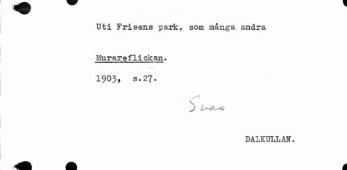//// Uti Frisens park, som många andra Muraref1i ok an« //// 1903, s.27. //// U-e^o //// DALKULLM. ////
