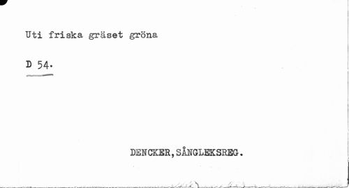 //// Uti friska gräset gröna //// i //// D 54- //// i i //// DENCKER,SÅNGLEKSREG. //// T ////