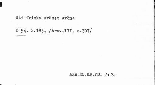//// » //// Uti friska gräset gröna //// •v >• • //// D 54. 3.185, /Arw.,111, s.JO?/ //// ¦ ¦ //// I //// r //// i //// ARW. MS. KB. VS. 2:2. //// ¦ //// i 1 i ////