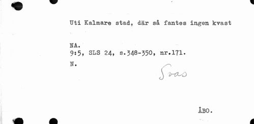 //// Uti Kalmare stad, där så fantes ingen kvast //// r //// HA. " //// 9:5, SLS 24, s.348-350, nr.171. N. //// ÅBO. ////