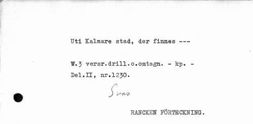 //// Uti Kalmare stad, der finnes --- //// W*3 versr.drill•o.omtagn. - kp. -Del• II., nr#1230. //// RAHCKEF FÖRTECKNING. ////