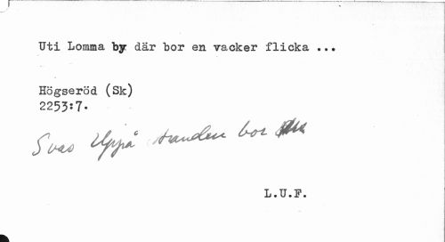 //// Uti Lomma by där bor en vacker flicka •.. //// % //// Högseröd (Sk) //// 225357. //// L.TJ.i1. ////