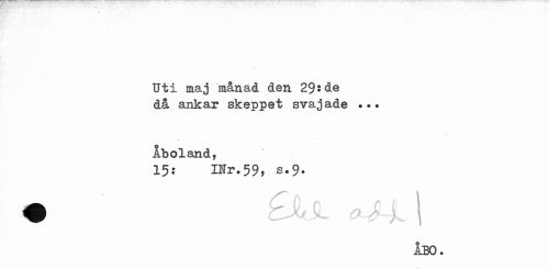 //// Uti maj månad den 29*de då ankar skeppet svajade //// Åboland, //// 15: IIr.59, s.9. //// ^ ö O $ -l. I //// ABO. ////