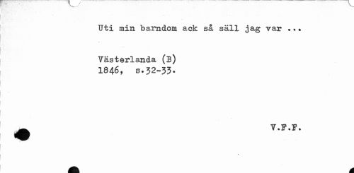 //// Uti min barndom ack så säll jag var ... Yästerlanda (B) //// 1846, s.32-33. //// ^ V.F.F. //// ¦ ^^^^^ //// * ////