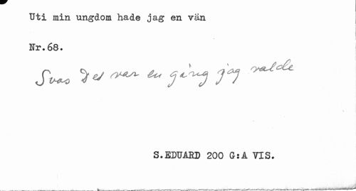 //// I //// Uti min ungdom hade jag en vän j //// Nr.68. //// S.EDUARD 200 G:A VIS. ////