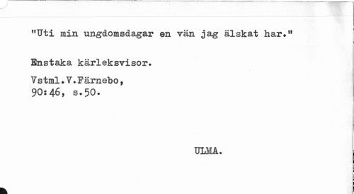 //// "Uti min ungdomsdagar en vän jag älskat har.M Enstaka kärleksvisor. //// Vstml.V.Fämebo, 90:46, s.50. //// ULM A. //// k ////