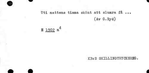 //// Uti nattens timma skönt att slumra få //// (Av G.Ryd) //// E 1902 n4 //// KBsS SKILLINGTRYCKSREG. ////