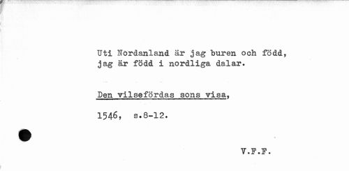 //// Uti Nordanland är ja g buren och född, jag är född i nordliga dalar. //// Den vilsefördas sons visa, 1546, s.8-12. //// 7.F.P. ////