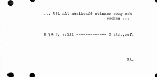 //// ... Uti nåt rausikcafé svinner sorg och //// suckan . ? • //// B 79:3, s. 211 --- 2 str.,ref. //// RA. ////