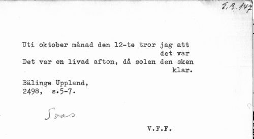 //// ¦ i //// Uti oktober månad den 12-te tror jag att //// det Tar //// Det var en livad afton, då solen den sken //// 1c X E!T • //// Bälinge Uppland, //// 2498, s.5-7* //// 9. //// J //// V.P.P. I ////
