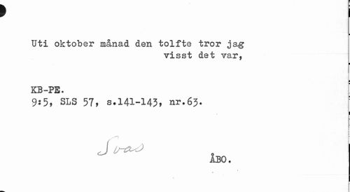 //// f I //// i //// Uti oktober månad den tolfte tror jag //// visst det var, //// ii ¦ //// KB-PE. //// 9:5, SLS 57, s.141-143, nr.63. //// I //// O //// J , //// ABO. //// c. ////