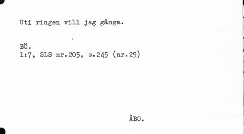 //// il //// Uti ringen vill jag gånga. //// 1 //// BÖ. //// 1:7, SLS nr.205, s.245 (nr.29) //// ÅBO. //// k ////
