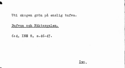 //// B j //// i //// Uti skogen grön på enslig tufva. Dufvan och Näktergalen. //// 6:4, INE 8, s.46-47• //// i //// l //// ÅBO. //// r //// L ////
