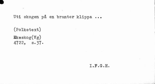 //// ! //// i j //// Uti skogen på en branter klippa . • * //// (Polketext) Ekeskog(Vg) //// 4722, s.57- //// I.P.G.H. ////