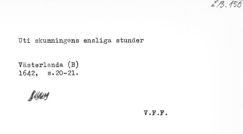 //// / å f v \m*r //// Uti skumningens ensliga stunder //// Västerlanda (B) 1642, s.20-21. //// Pm //// 1. p.p. ////