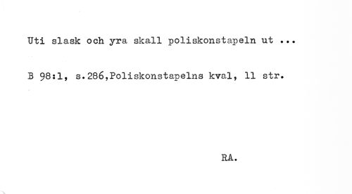 //// Uti slask och yra skall poliskonstapeln ut B 98:1, s.286,Poliskonstapelns kval, 11 str* //// RÅ- ////